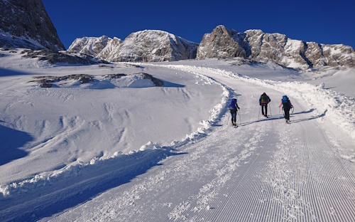 Třídenní skitourigová(případně sněžicová) akce do Dachsteingebirge se spaním na chatách Wiesberg Haus a Simony Hütte, výletem pod Dachstein a základy vyhledávání a záchrany zasypaného. Jedná se o méně náročnou akci v zimním prostředí. Podmínkou je obstojná lyžařská zdatnost. Na stupnici obtížnosti od 1 do 5 ji hodnotím na 3.